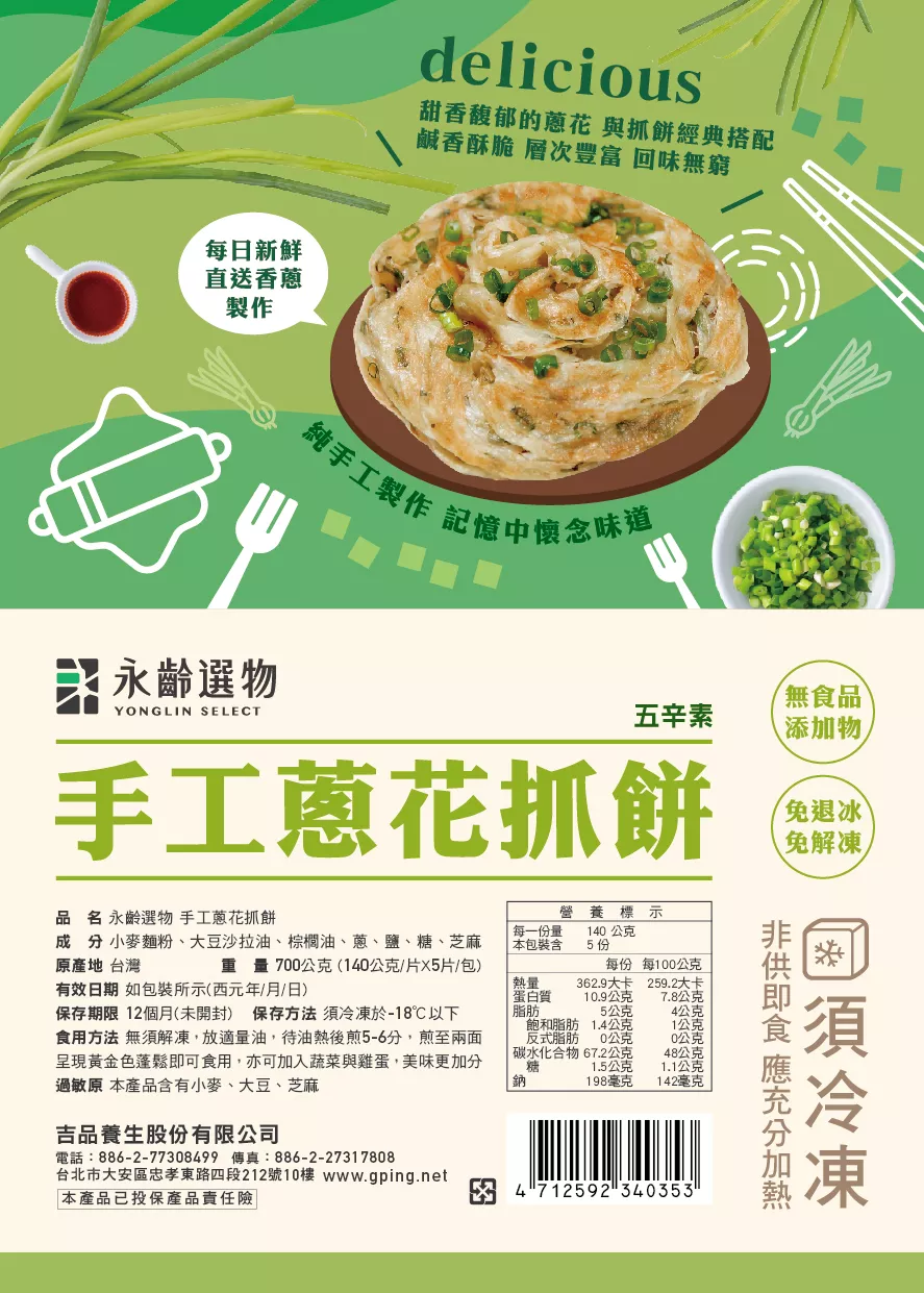 ▲三餐都想吃▲【永齡選物】手工蔥花抓餅(140公克/片x5片/包)
